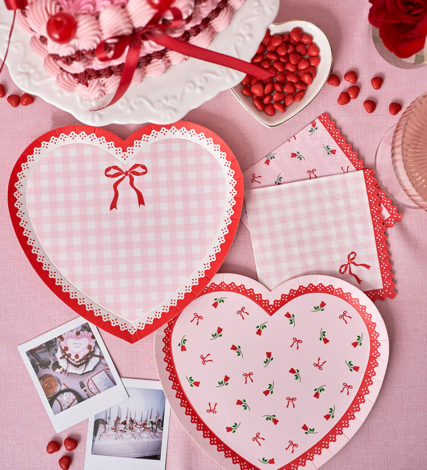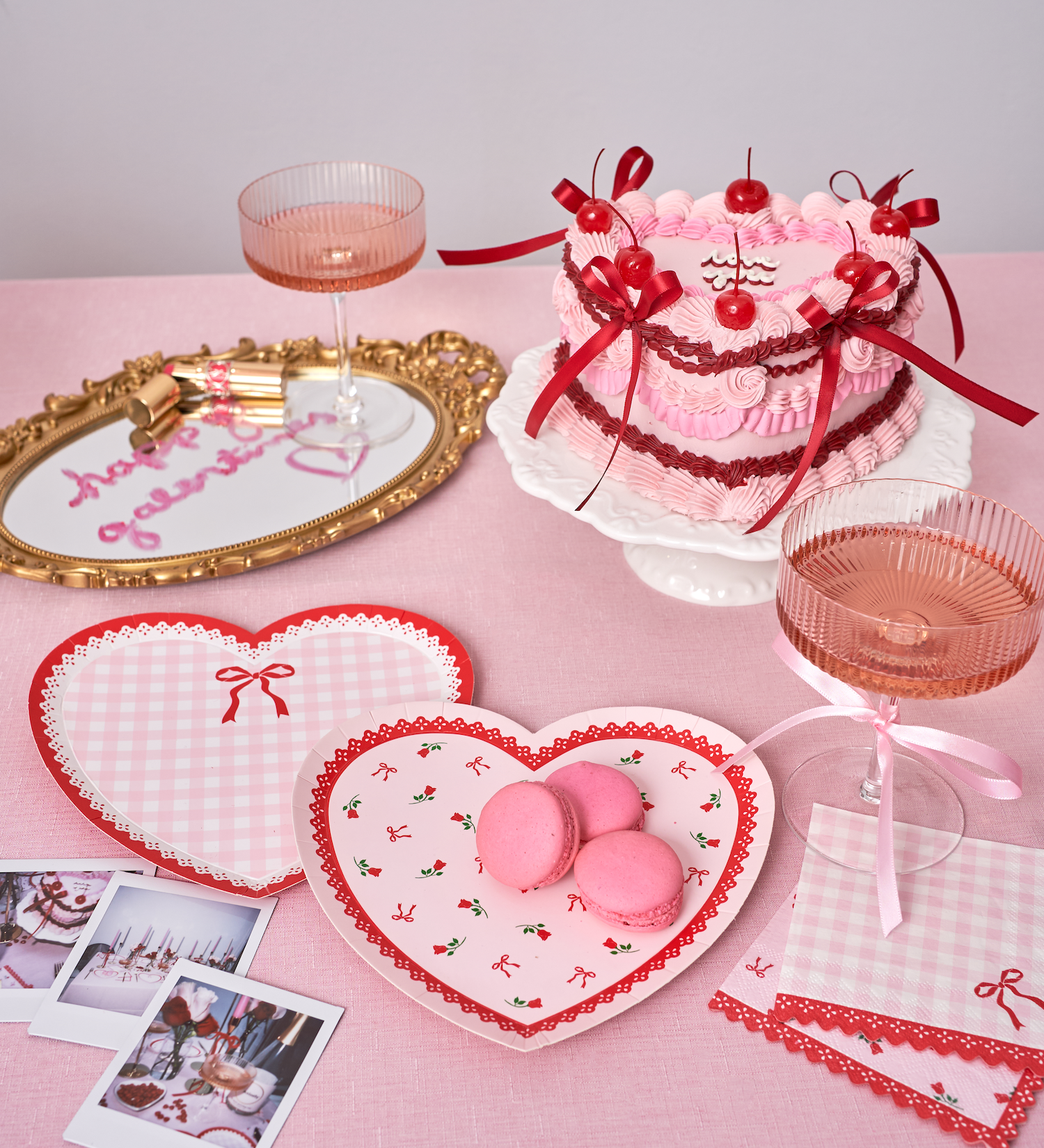 Our Valentine’s collection is made for hosting your favorite people, from Galentine’s brunches to bridal showers and everyday gatherings made a little prettier. Featuring soft pinks, classic reds, and playful details like dainty florals, gingham, bows, and lace-inspired accents, this collection brings a modern coquette feel to elevated hosting.