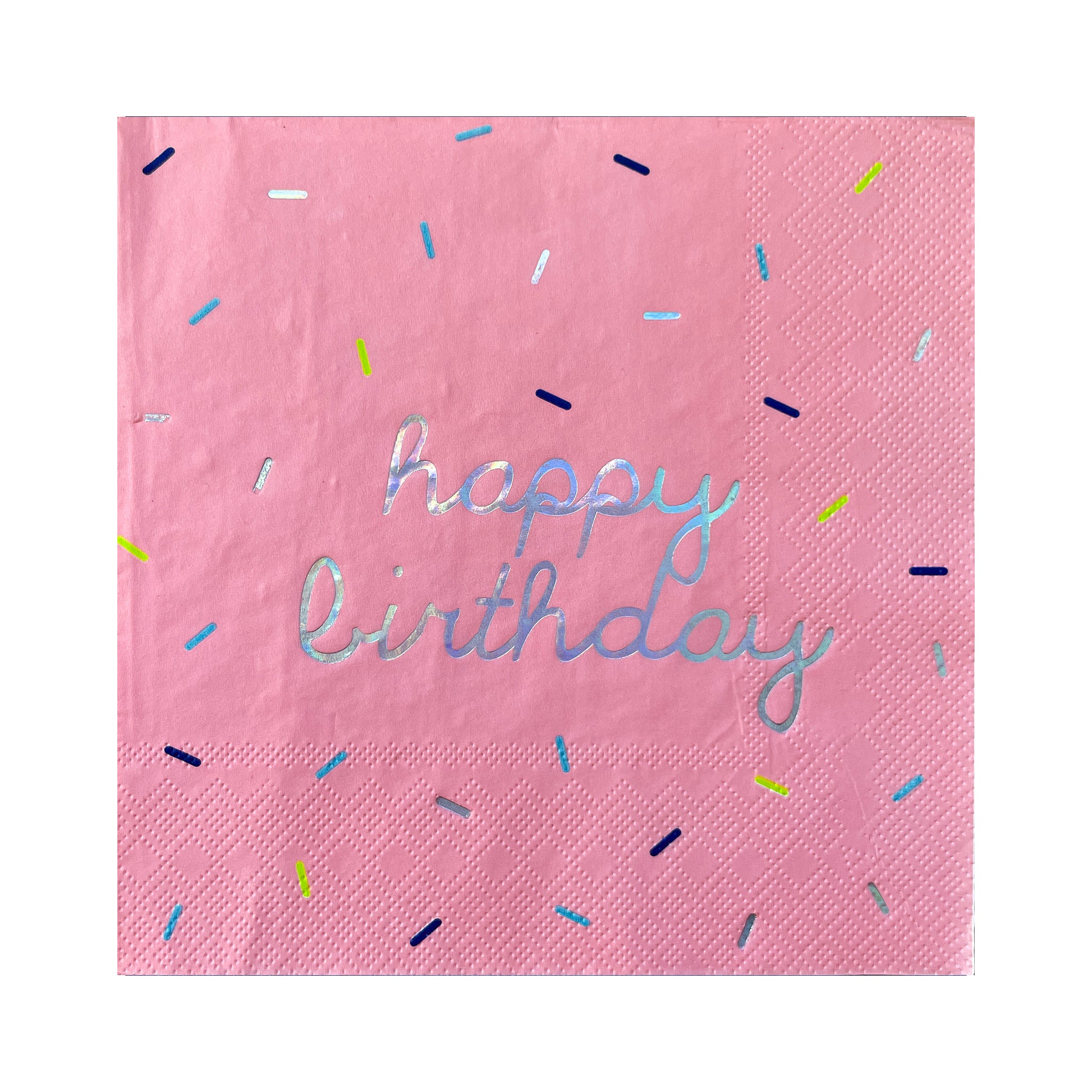 - 24 Lunch napkins ( 6 pink, 6 green, 6 navy), 6.5" folded