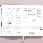 - Inner Page Ink Colors: Lavender, blush, greys, and black