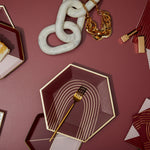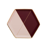 Bold yet understated, our maroon and pink hexagon party plates are adorned with delicate gold lines and are perfectly made for baby showers, wedding events, milestone birthdays, special occasions and holidays!