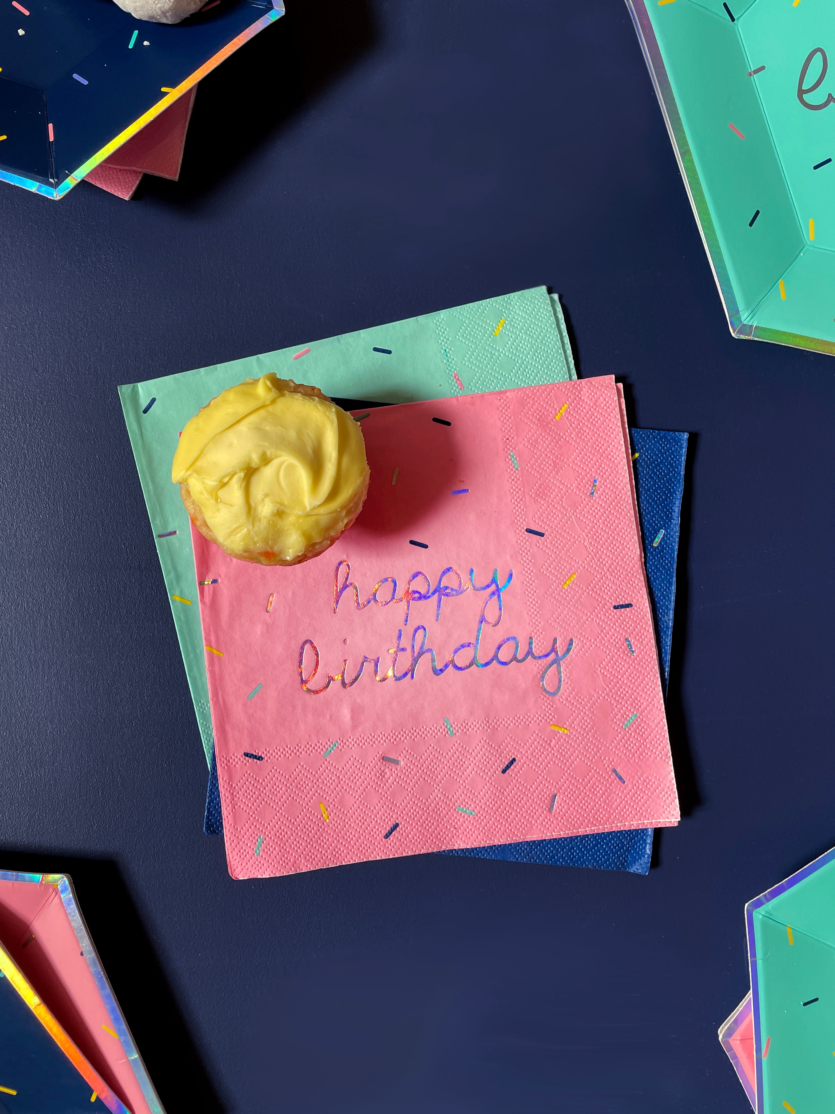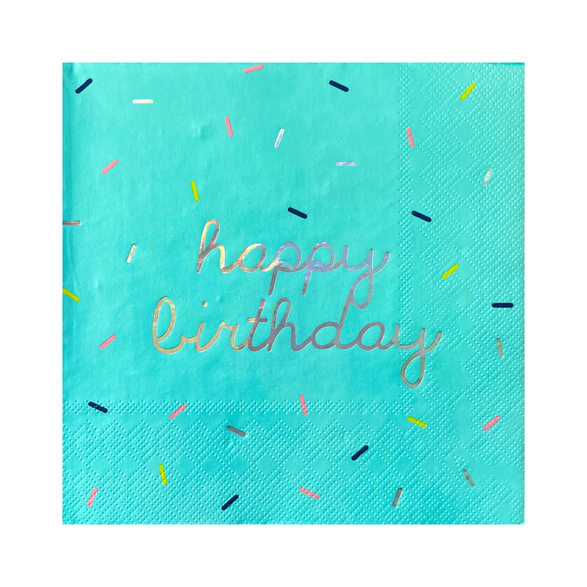 Sprinkles - Bright Happy Birthday Lunch Napkins (Multi-Color Pack, 24 Count)