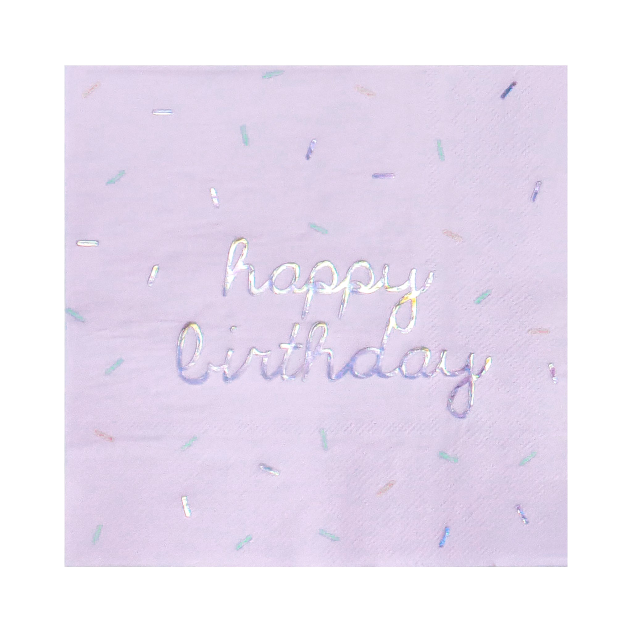 - 24 Lunch napkins (6 light pink, 6 mint green, 6 light purple), 6.5" folded
