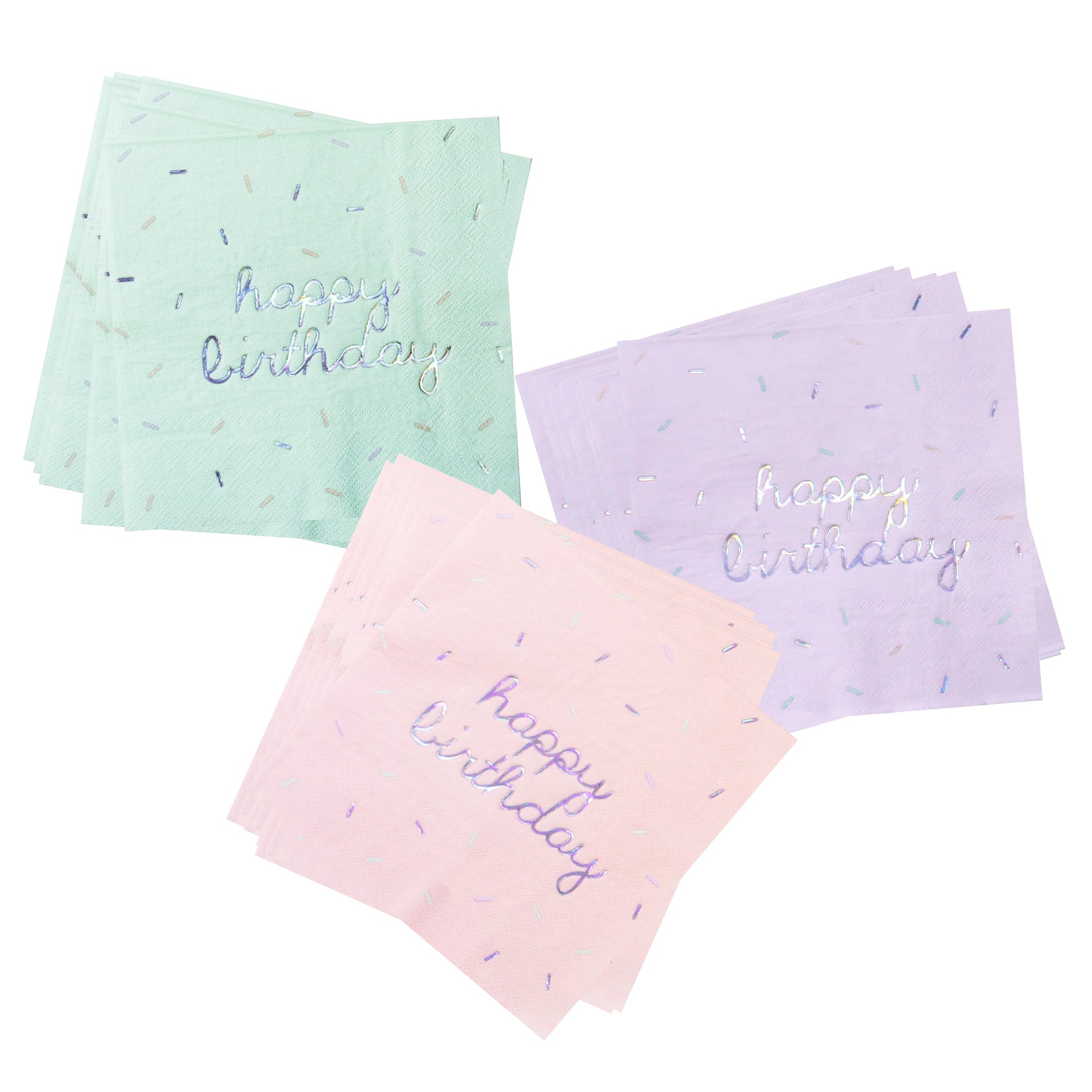 Sprinkles - Pastel Happy Birthday Lunch Napkins (Multi-Color Pack, 24 Count)