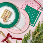 Our large dinner plates (10.5"), come in a pack with two colorways - green and pink, and pink and red (four of each, totaling eight plates). They pair perfectly with our Coquette Holiday small party plates and napkins for a complete holiday tablescape.