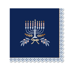 Our Modern Hanukkah Menorah Cocktail Napkins feature a deep navy background with a beautifully illustrated menorah surrounded by soft botanical details and finished with an intricate lace-inspired edge. Elegant and timeless, they’re perfect for serving cocktails, desserts, or small bites during Hanukkah gatherings and celebrations.