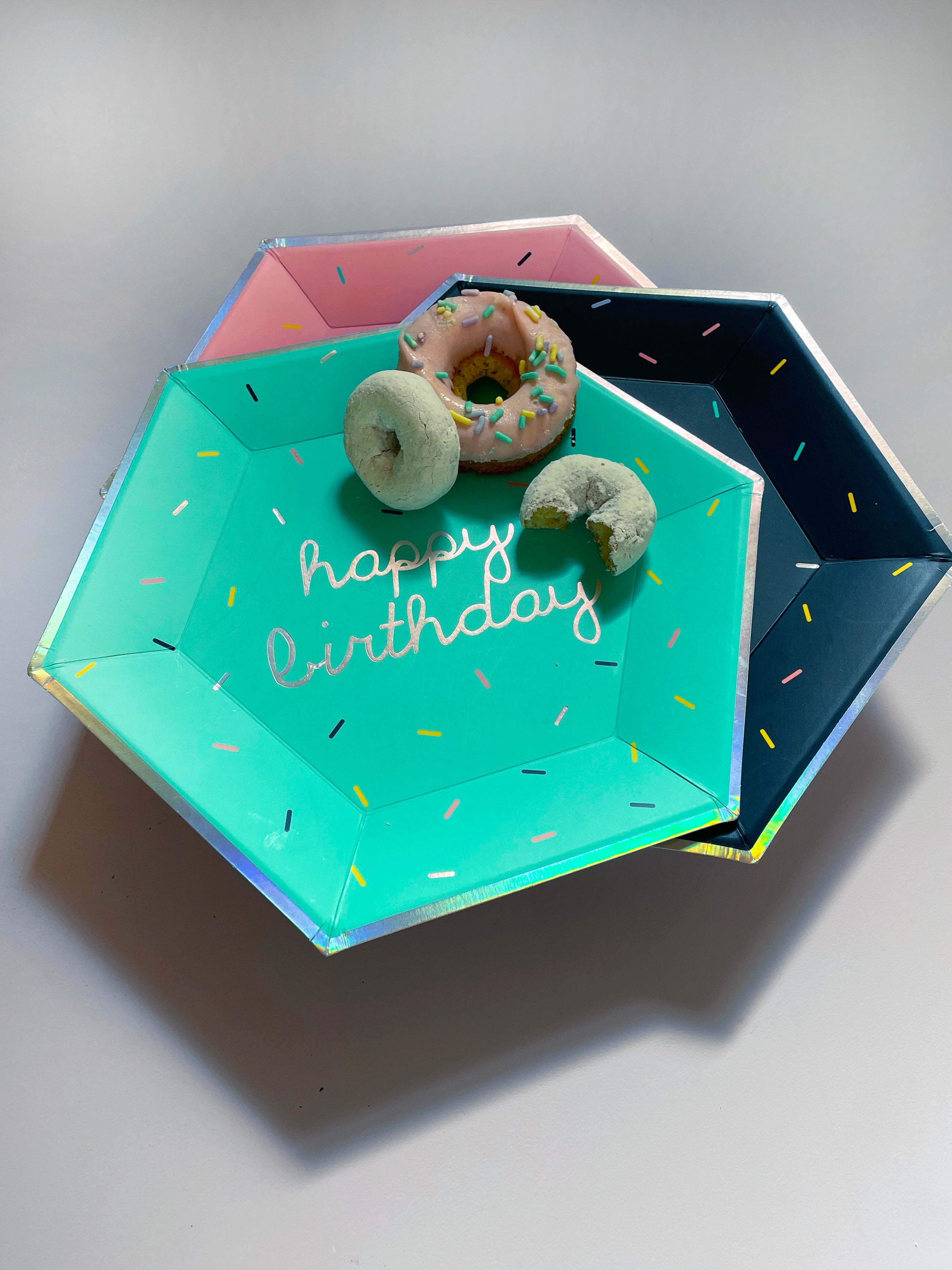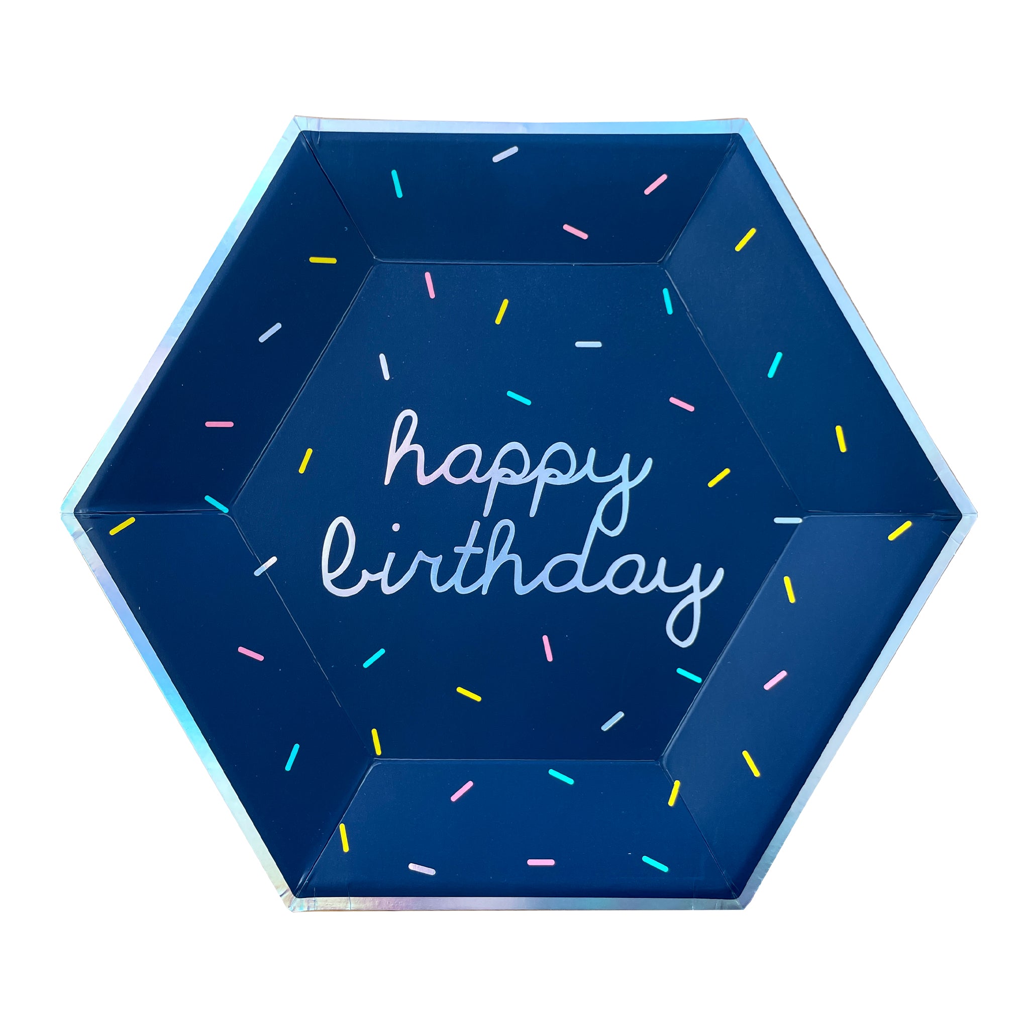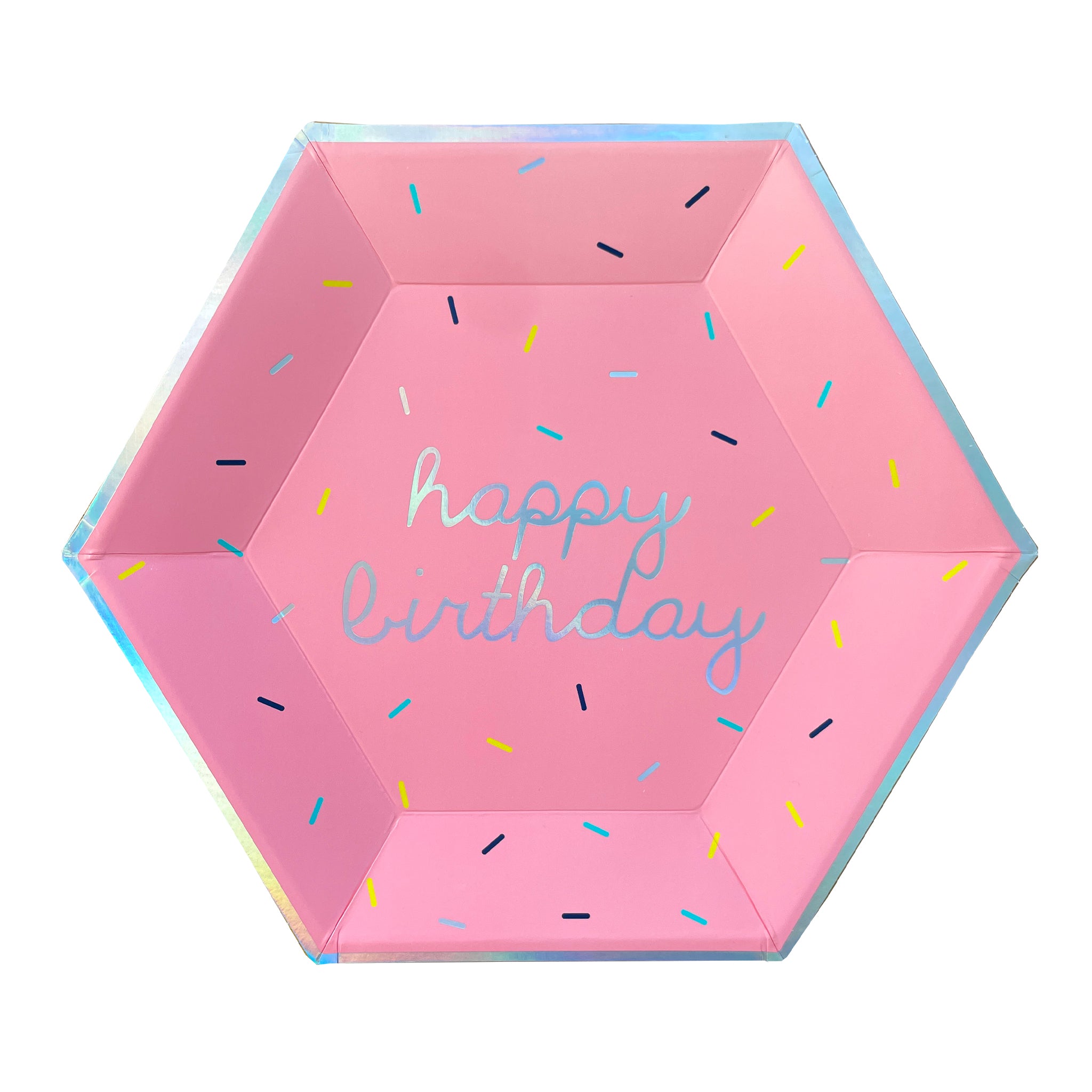 Shimmering in fun holographic sprinkles, our Happy Birthday hexagon paper plates in fun bright colors are great for both kids and adults who are young at heart! Perfect for parties with ice cream, donut, or cupcake themes! Complete with a sweet quote on the back of the plate to make your party extra special!