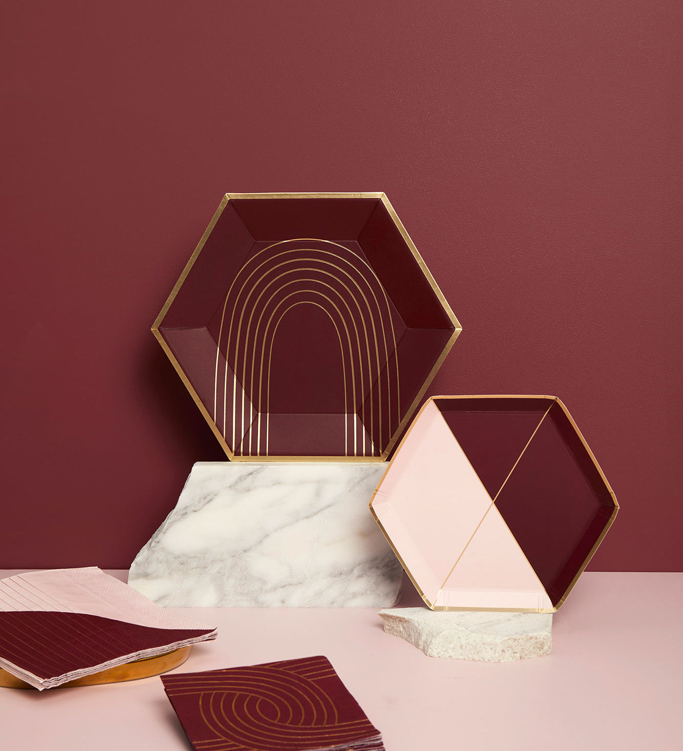 Our Bordeaux collection of party tableware effortlessly adds a touch of chic elegance to any event.